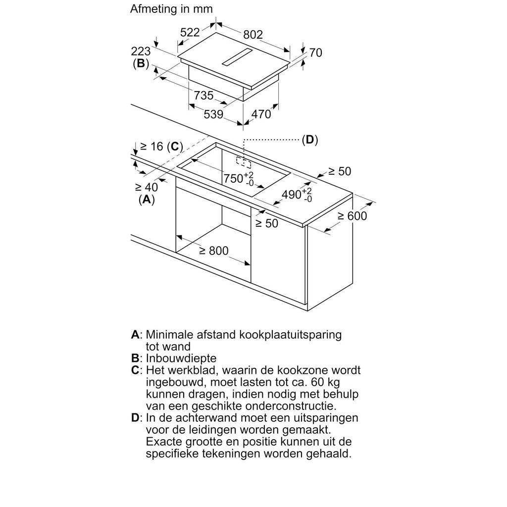 | Geschikt voor luchtafvoer of kringloopwerking (inclusief gedifferentieerde softwaremodi). De installatie-toebehoren voor kringloopwerking zonder afvoerkanaal, waaronder vier cleanAir Plus-geurfilters en een telescopisch element, zijn bij de kookplaat inbegrepen. Accessoires voor andere installatiemogelijkheden zijn beschikbaar, details in de planningsaanwijzingen. |